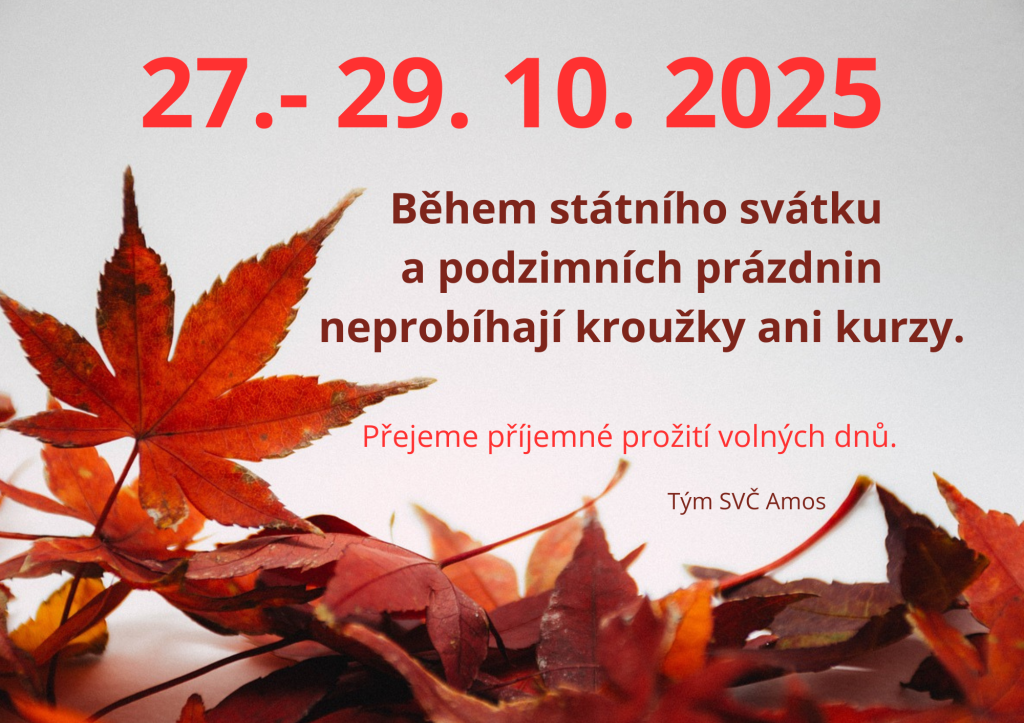 V době podzimních prázdnin a státního svátku neprobíhá zájmová činnost ani kurzy.