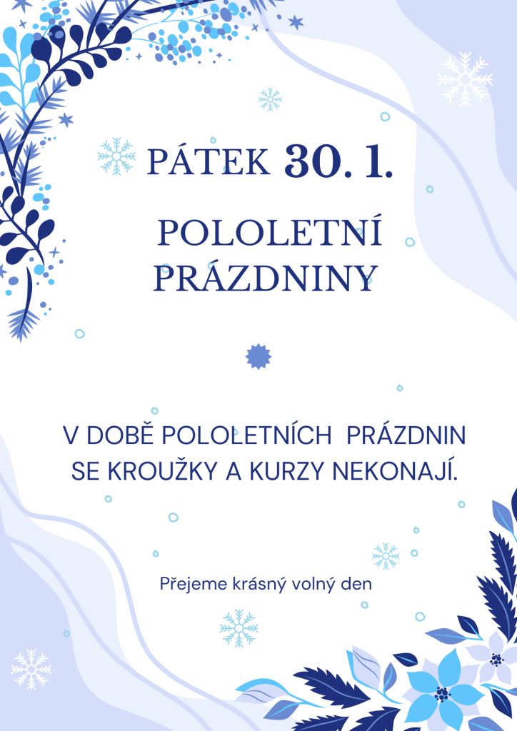 V den pololetních prázdnin se kroužky a kurzy nekonají.